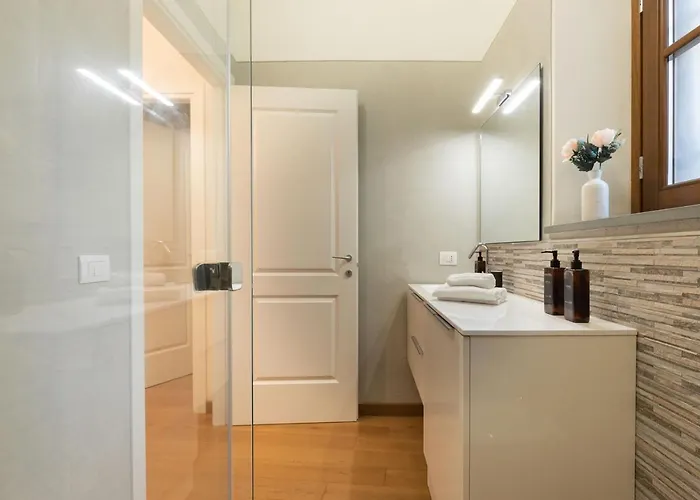 A Suite Near River, Relax And Design Behind The Tower apartman kínál egy teljesen felszerelt konyhát, valamint szobákat kávé/teafőzővel, íróasztallal és ülősarokkal. Az apartman vendégei ellátogathatnak a Borgo Stretto sétálóutca területére, amely mintegy 800 méterre található.